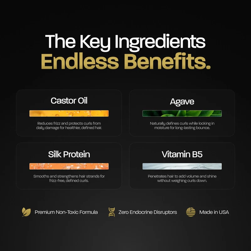 La protéine de soie renforce chaque mèche, offrant une brillance incroyable et une douceur soyeuse. Vos boucles paraissent visiblement plus saines, avec une souplesse que vous allez adorer.